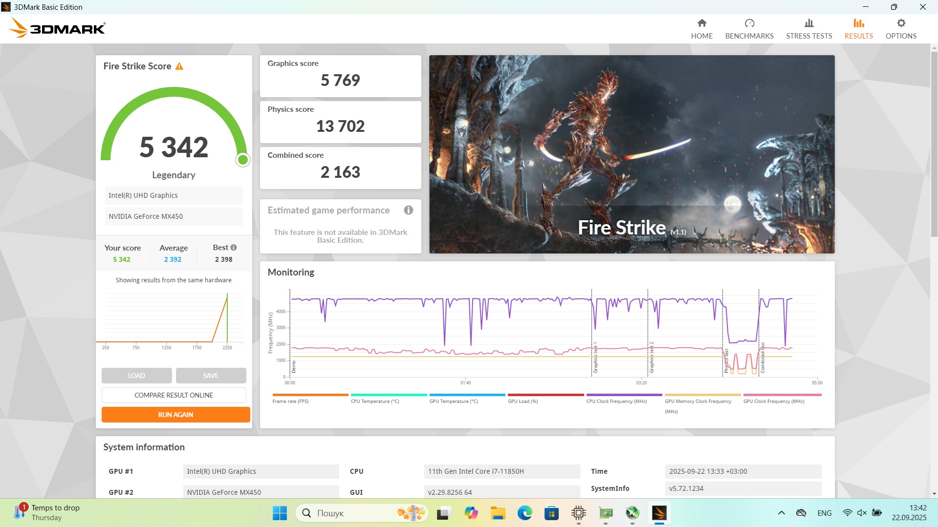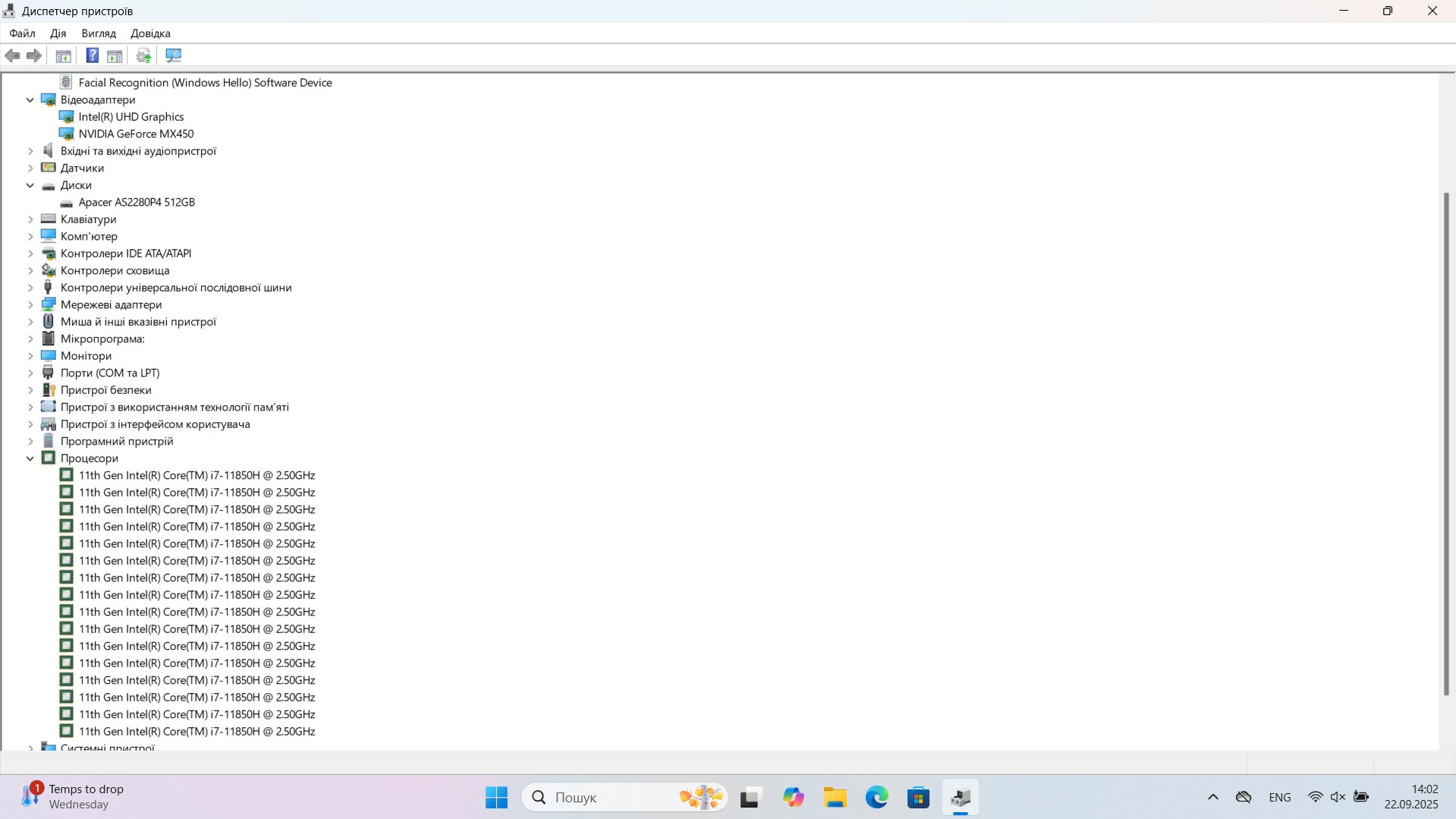 Відеокарта: Intel(R) UHD Graphics 1 Гб, NVIDIA GeForce MX450 2 Гб.