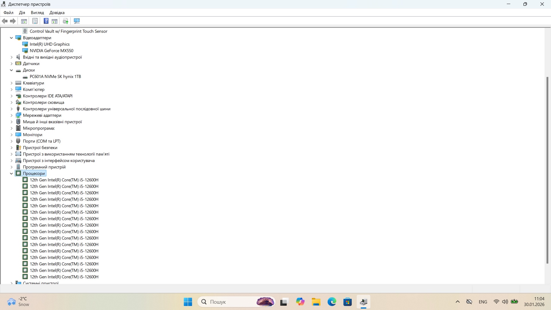 Процесор: Intel Core i5-12600H, 12 ядер 16 потоків.