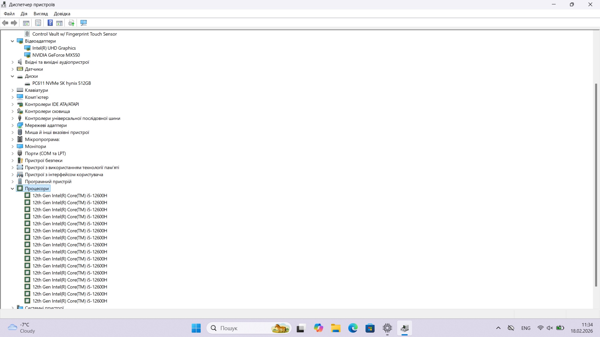 Відеокарта: NVIDIA GeForce MX550 2 Гб, Intel(R) UHD Graphics 1 Гб.