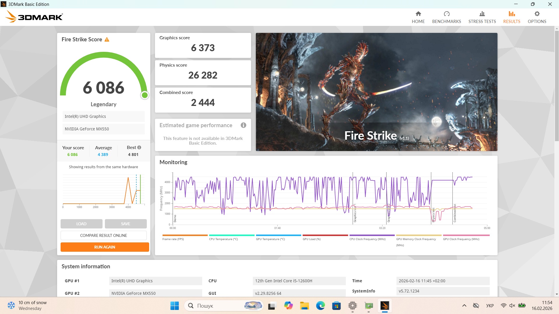 Процесор: Intel Core i5-12600H, 12 ядер 16 потоків.
