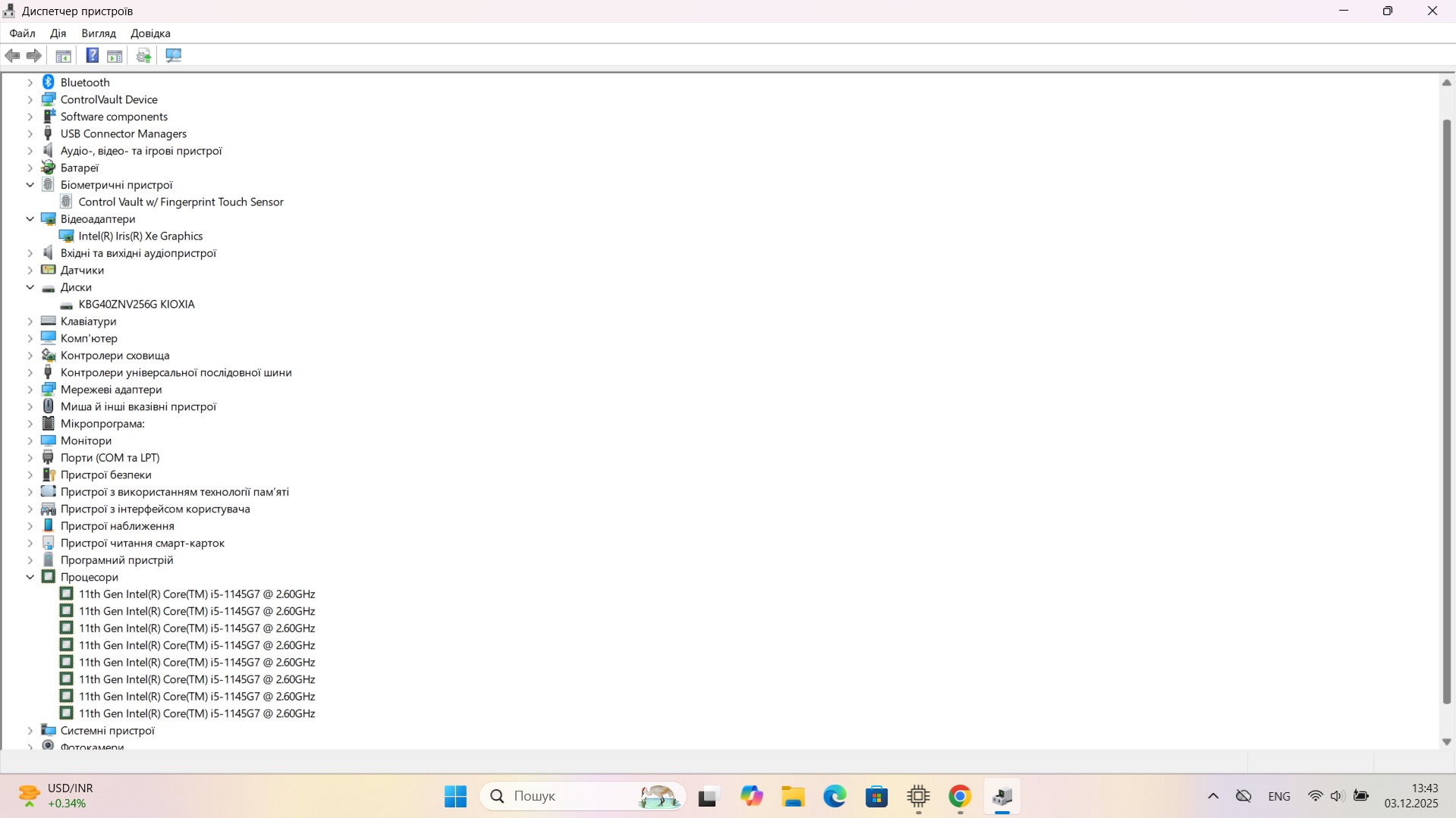 Процесор: Intel Core i5-1145G7, 4 ядра 8 потоків, 2.6-4.4 Ггц.