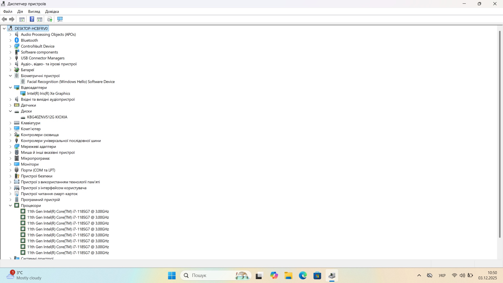 Процесор: Intel Core i7-1185G7, 4 ядра 8 потоків, 3.0-4.8 ГГц.