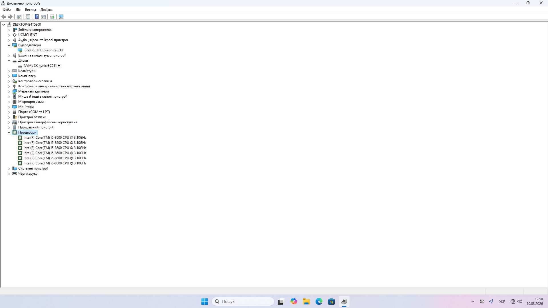 Процесор: Intel Core i5-8600, 6 ядер 6 потоків, 3.1 – 4.3 ГГц.