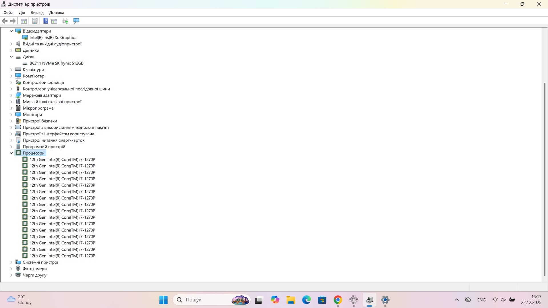 Процесор: Intel Core i7-1270P, 12 ядер 16 потоків, 2.2 – 4.8 ГГц.