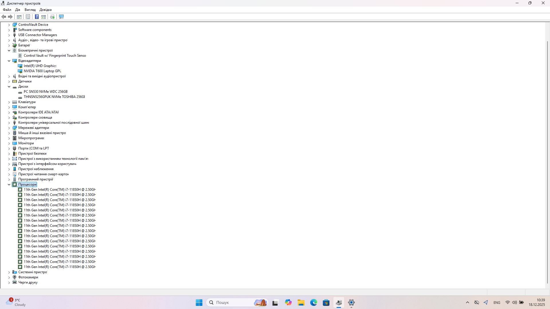Відеокарта: Intel(R) UHD Graphics 1 Гб, NVIDIA T600 Laptop GPU 4 Гб.