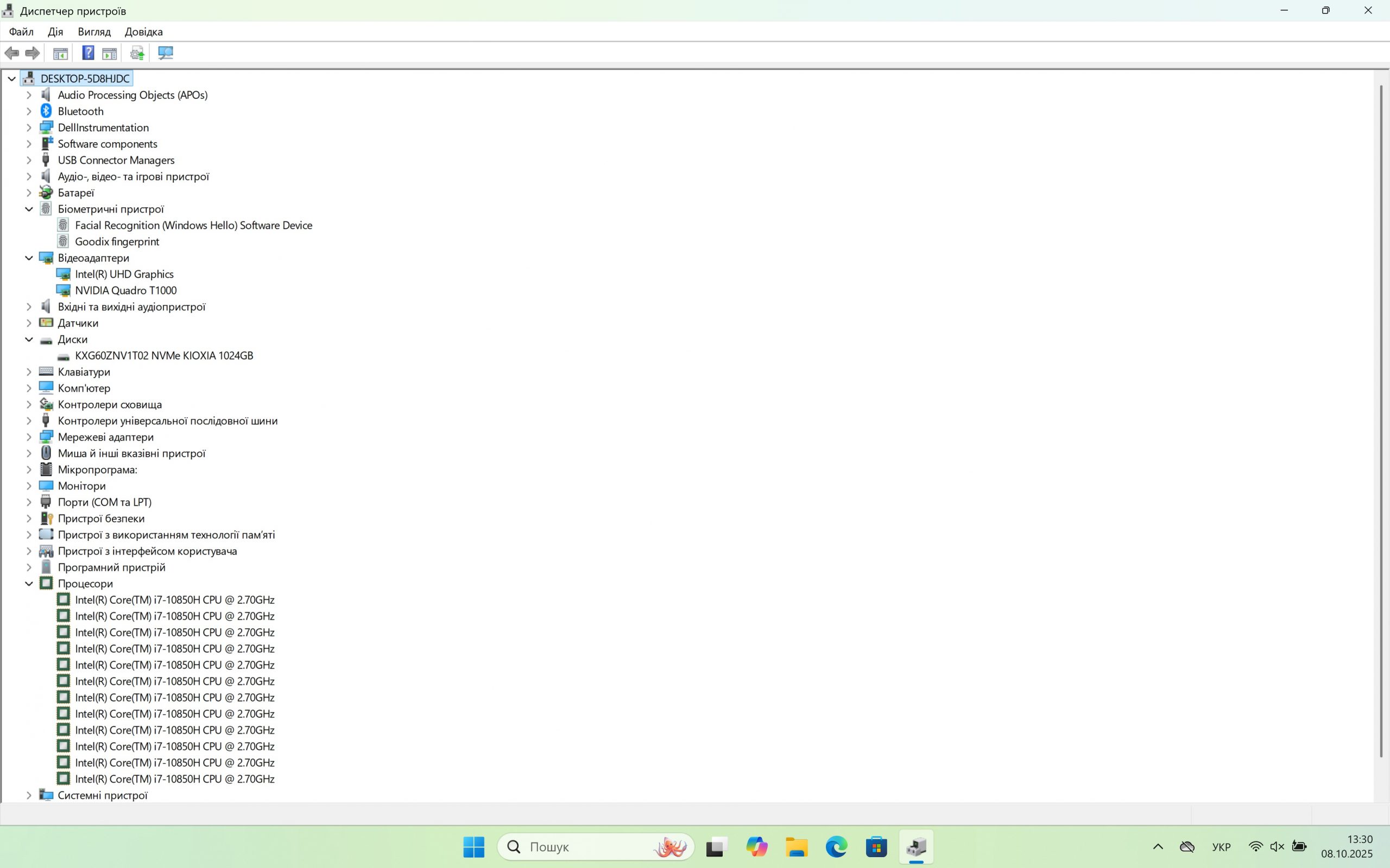 Відеокарта: Intel(R) UHD Graphics 1 Гб, NVIDIA Quadro T1000 4 Гб.
