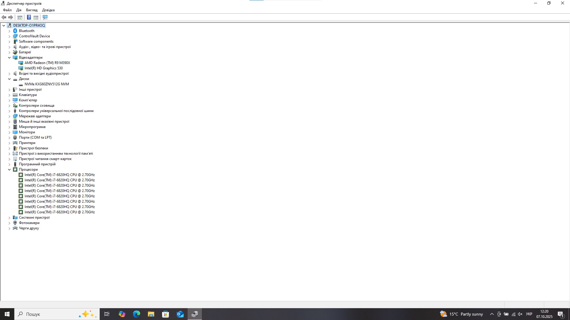 Процесор: Intel Core i7-6820HQ, 4 ядра 8 потоків, 2.7-3.6 ГГц.