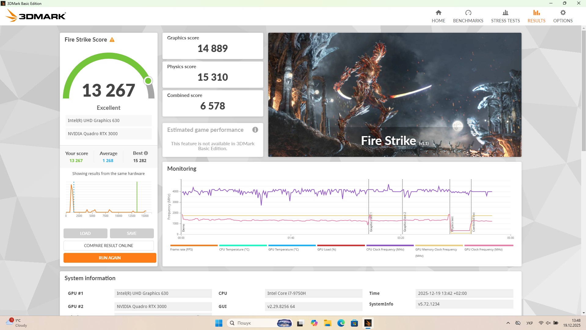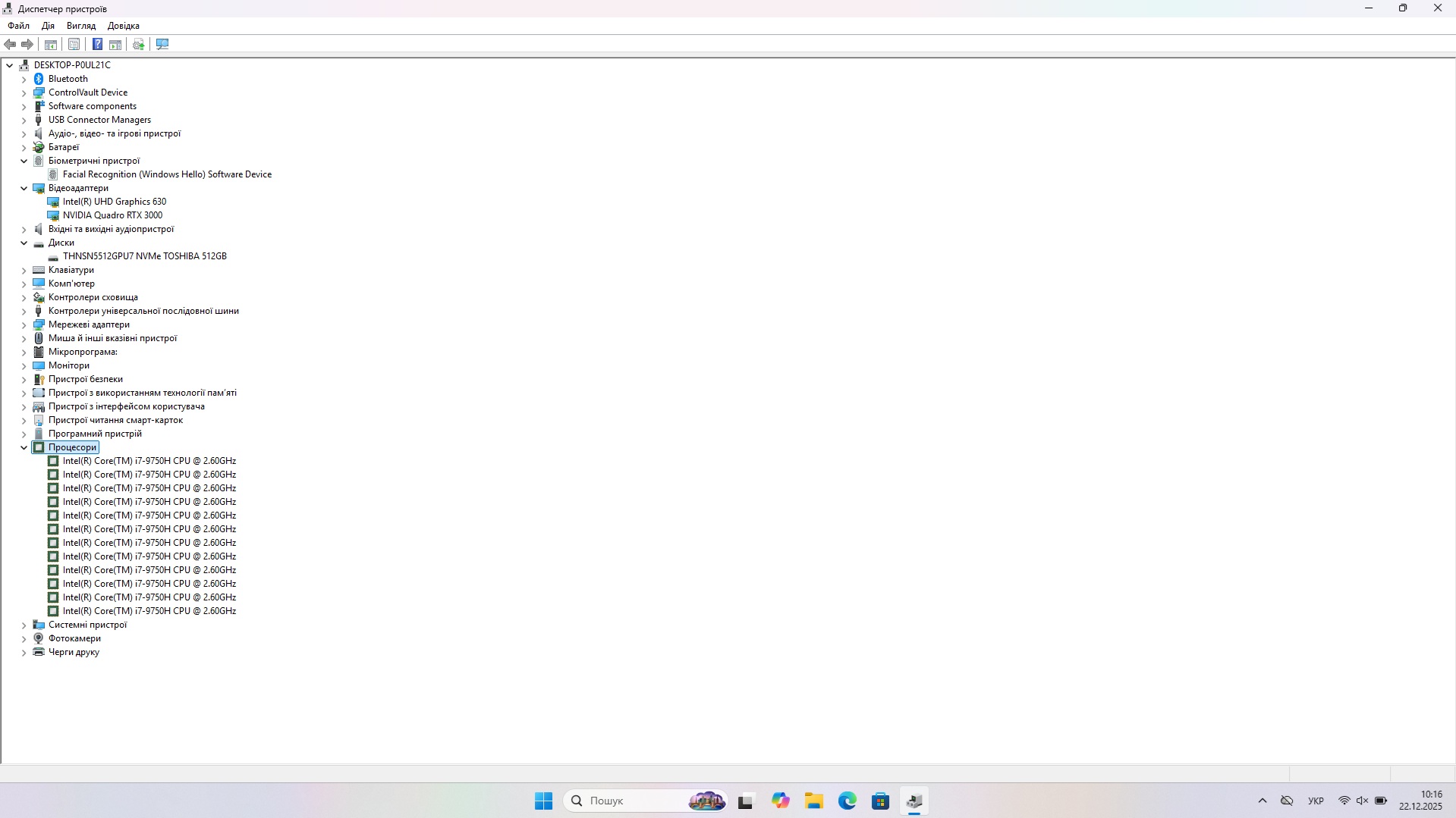 Відеокарта: NVIDIA Quadro RTX 3000 6 Гб, Intel(R) UHD Graphics 630 1 Гб.