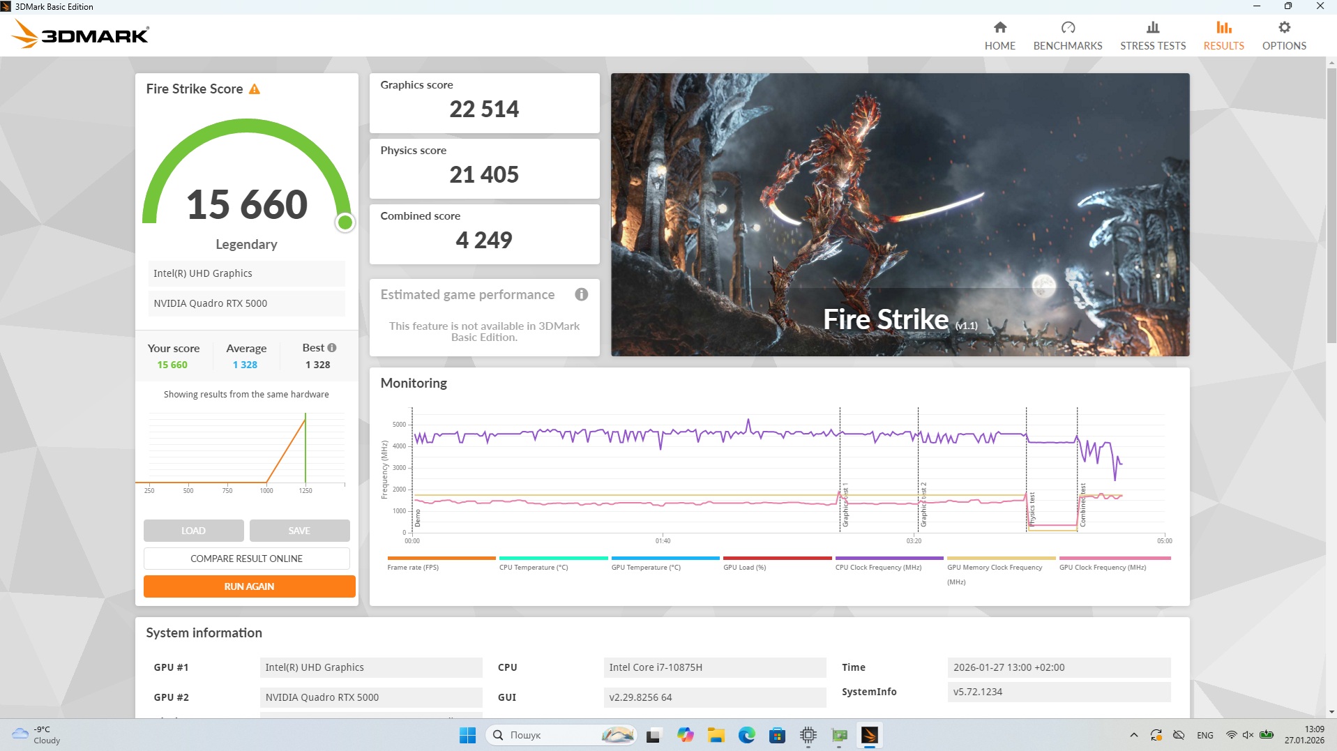 Відеокарта: Intel(R) UHD Graphics 1 Гб, NVIDIA Quadro RTX 5000 16 Гб.