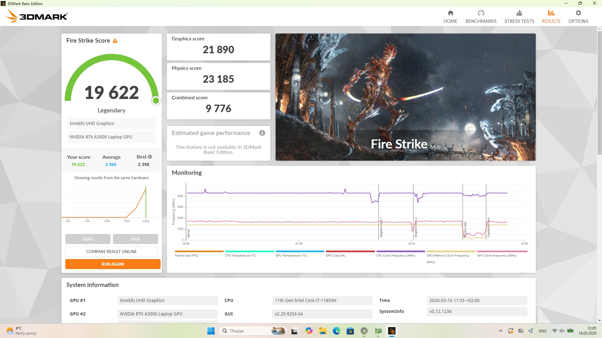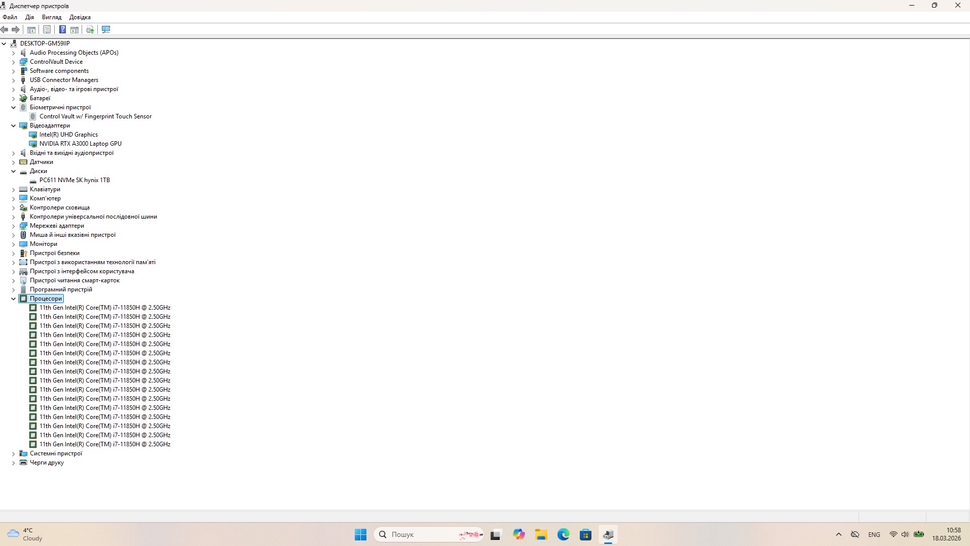 Відеокарта: Intel(R) UHD Graphics 1 Гб, NVIDIA RTX A3000 Laptop GPU 6 Гб.