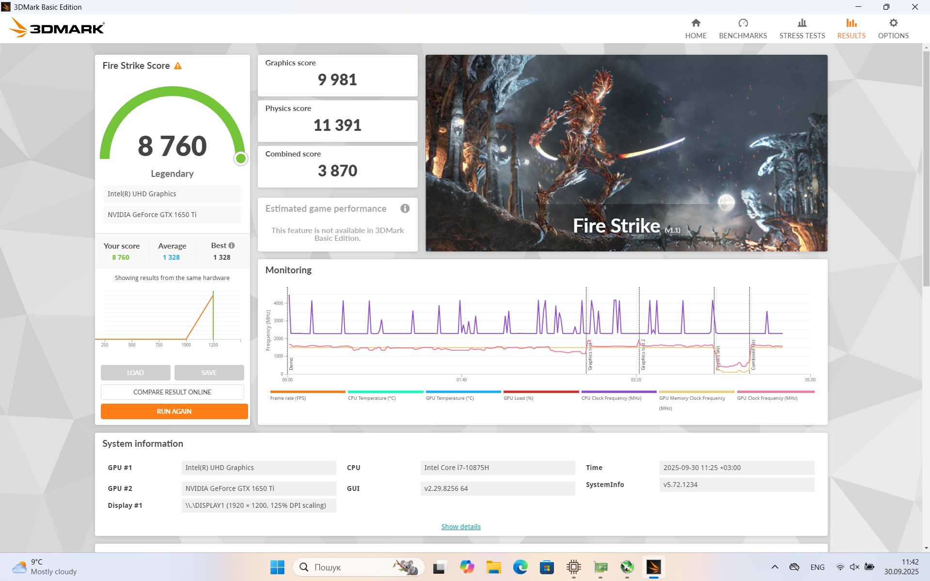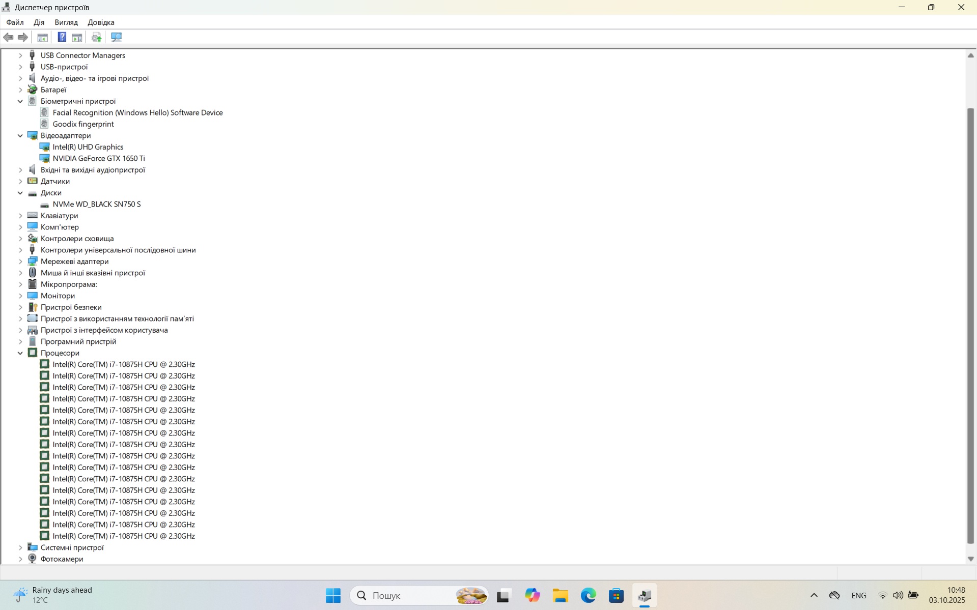 Відеокарта: NVIDIA GeForce GTX 1650 Ti 4 Гб, Intel(R) UHD Graphics 1 Гб.