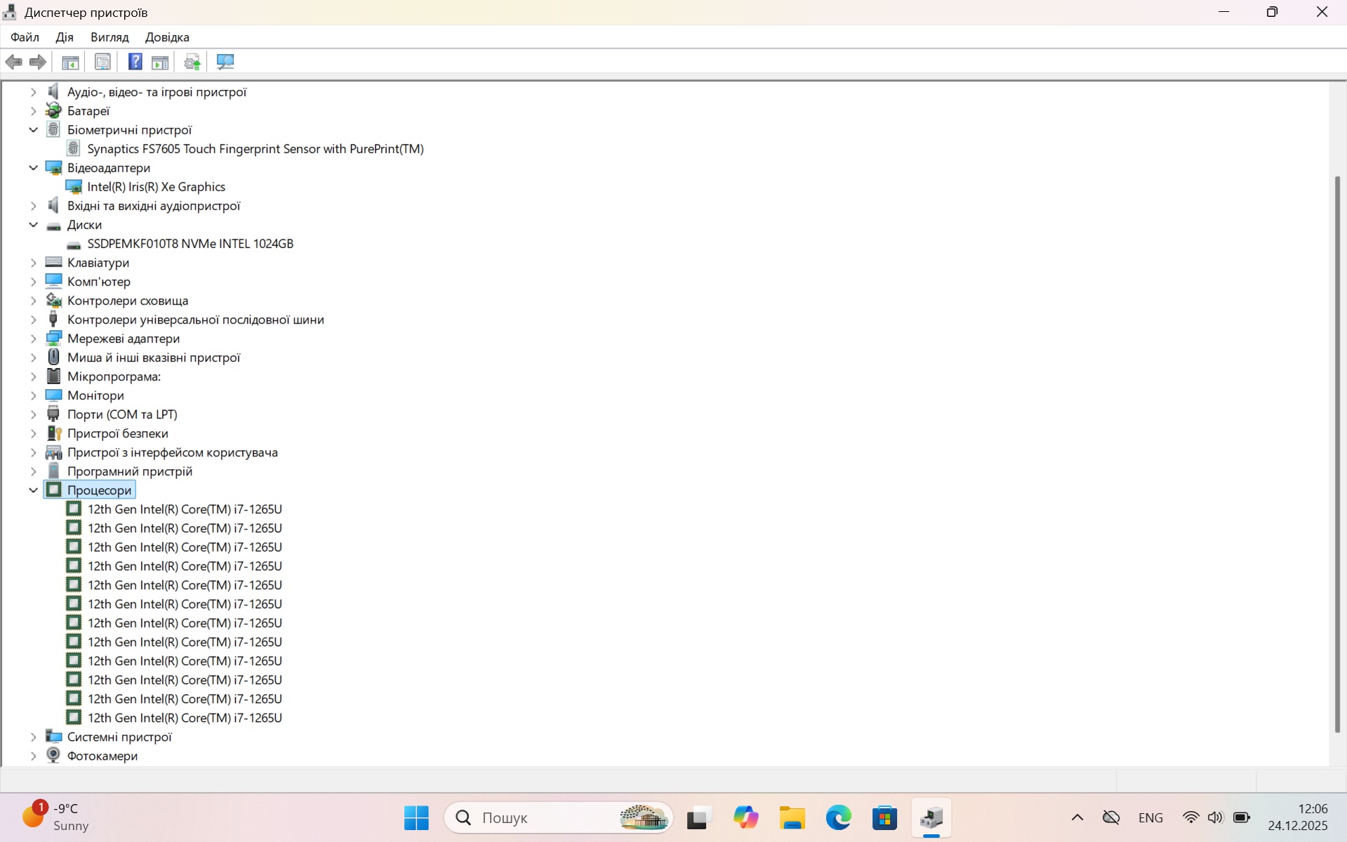 Процесор: Intel Core i7-1265U, 10 ядер 12 потоків, 3.6-4.8 ГГц.