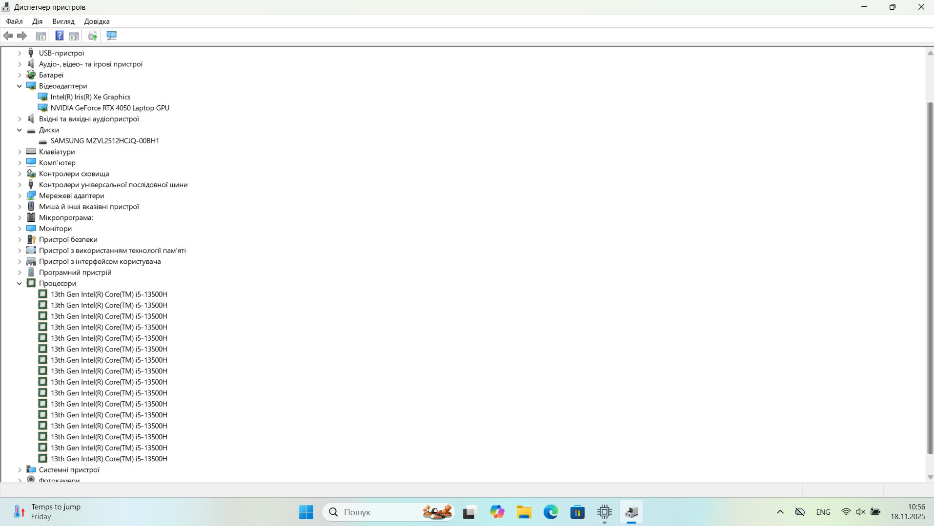 Процесор: 13th Intel Core i5-13500H, 12 ядер 16 потоків, 3.5-4.7 ГГц.