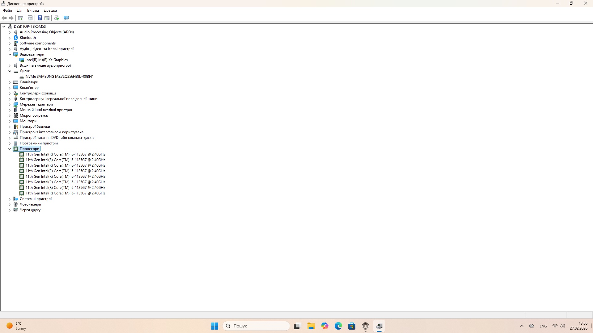 Процесор: Intel Core i5-1135G7, 4 ядра 8 потоків, 2.4-4.2 ГГц,.