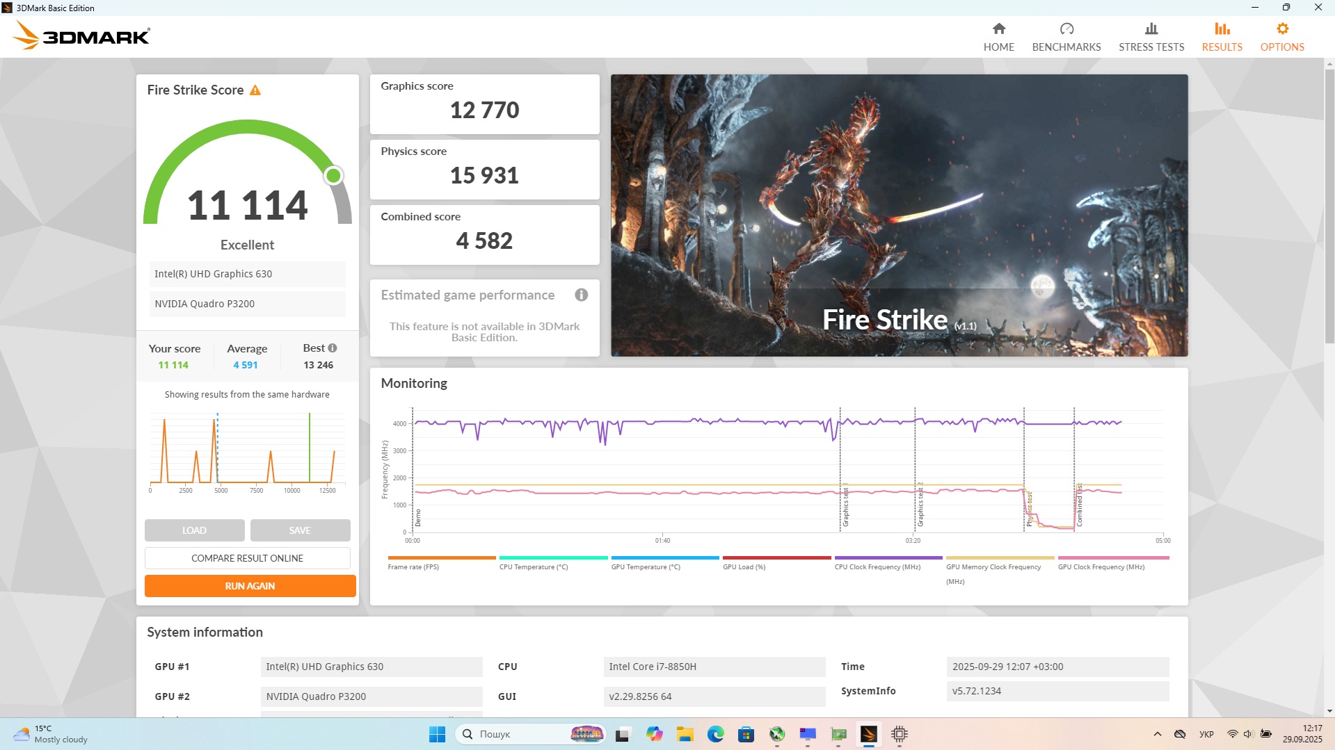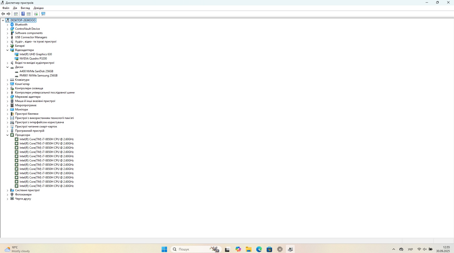 Відеокарта: Intel(R) UHD Graphics 630 1 Гб, NVIDIA Quadro P3200 6 Гб.